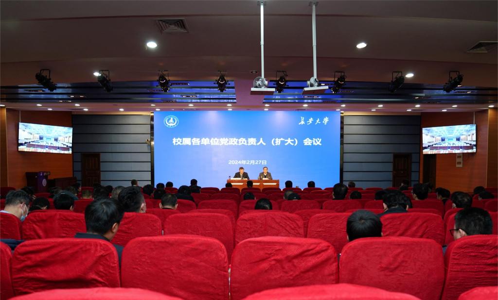2月27日下午,葡京集团网站召开校属各单位党政负责人(扩大)会议,总结寒假主要工作,安排部署2024年工作任务。校党委书记陈志坚主持会议并讲话,校长沙爱民总结寒假及开学初主要工作并安排全年要点工作。会议设北校区北辰楼会议中心二层报告厅、南校区北院学术交流中心报告厅两个会场。